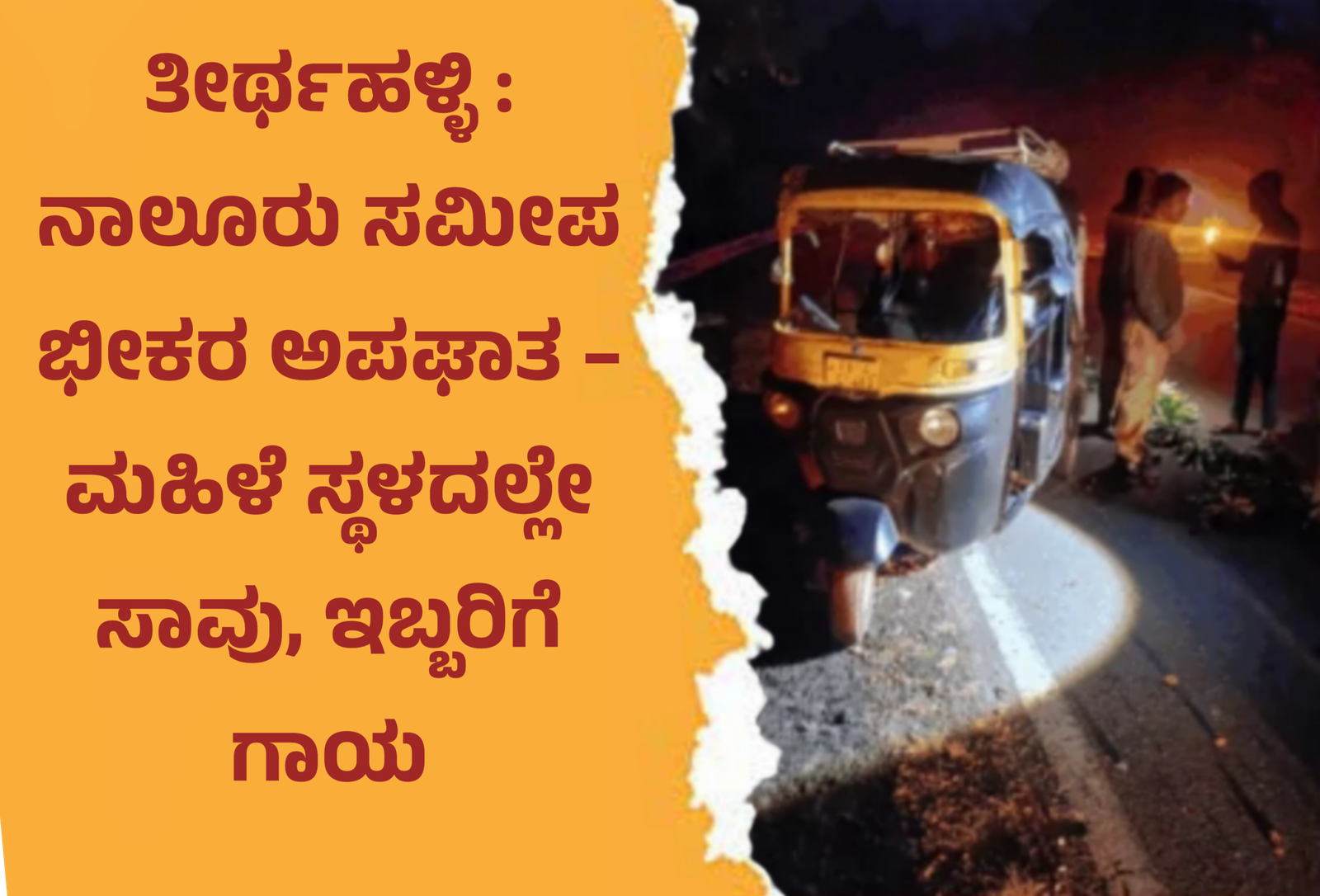 ತೀರ್ಥಹಳ್ಳಿ : ನಾಲೂರು ಸಮೀಪ ಭೀಕರ ಅಪಘಾತ – ಮಹಿಳೆ ಸ್ಥಳದಲ್ಲೇ ಸಾವು, ಇಬ್ಬರಿಗೆ ಗಾಯ
