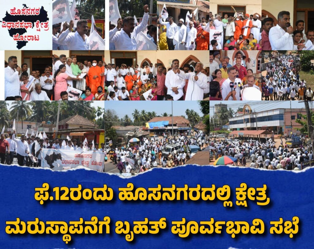 ಹೊಸನಗರ:ಐದು ಜಲಾಶಯಗಳ ನಿರ್ಮಾಣದಿಂದ ಭೌಗೋಳಿಕ ಅಸ್ತಿತ್ವ ಕಳೆದುಕೊಂಡು ಅಭಿವೃದ್ಧಿಯಲ್ಲಿ ಹಿನ್ನಡೆ ಅನುಭವಿಸುತ್ತಿರುವ ಹೊಸನಗರ ವಿಧಾನಸಭಾ ಕ್ಷೇತ್ರವನ್ನು ಮರುಸ್ಥಾಪಿಸಬೇಕೆಂಬ ಕೂಗು ಮತ್ತೆ ಗಟ್ಟಿಯಾಗುತ್ತಿದೆ. ಈ ಸಂಬಂಧ ಹೋರಾಟದ ಮುಂದಿನ ಹಂತವಾಗಿ ಫೆಬ್ರವರಿ 12 ರಂದು ಪಟ್ಟಣದ ಶ್ರೀ ಗಾಯತ್ರಿ ಮಂದಿರದಲ್ಲಿ ಬೃಹತ್ ಪೂರ್ವಭಾವಿ ಸಭೆಯನ್ನು ಆಯೋಜಿಸಲಾಗಿದೆ ಎಂದು ಜಿಲ್ಲಾ ಪಂಚಾಯತ್ ಮಾಜಿ ಅಧ್ಯಕ್ಷ ಕಲಗೋಡು ರತ್ನಾಕರ್ ತಿಳಿಸಿದ್ದಾರೆ.
